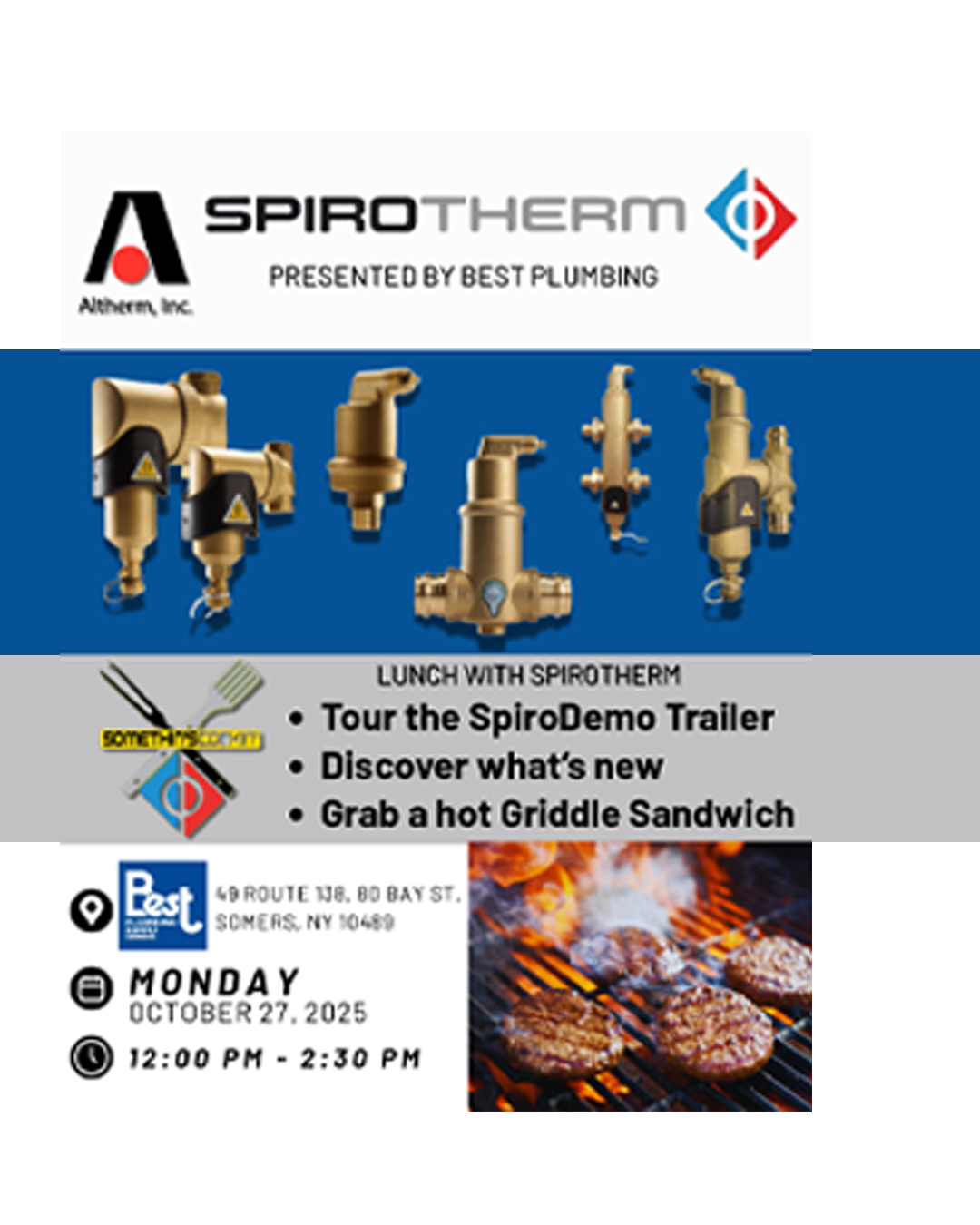 Take a break and join us for lunch! Between 12 PM and 2:30 PM, stop by the SpiroDemo Trailer for a quick tour, a chat, and a fresh-grilled sandwich hot off the griddle.